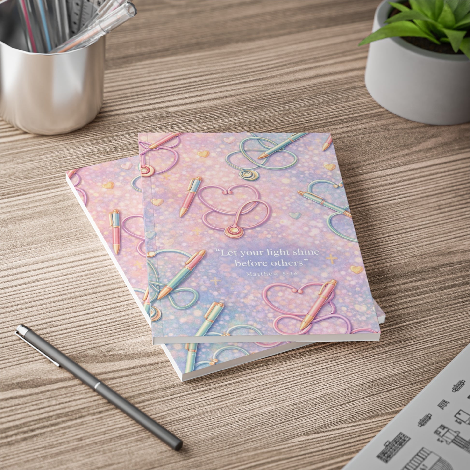 Write your prayers, reflect on your journey, and pour out your heart in this beautifully designed Faith & Nursing journal. Created for nurses who lean on God through every shift, this journal is your safe space for faith, strength, and renewal.