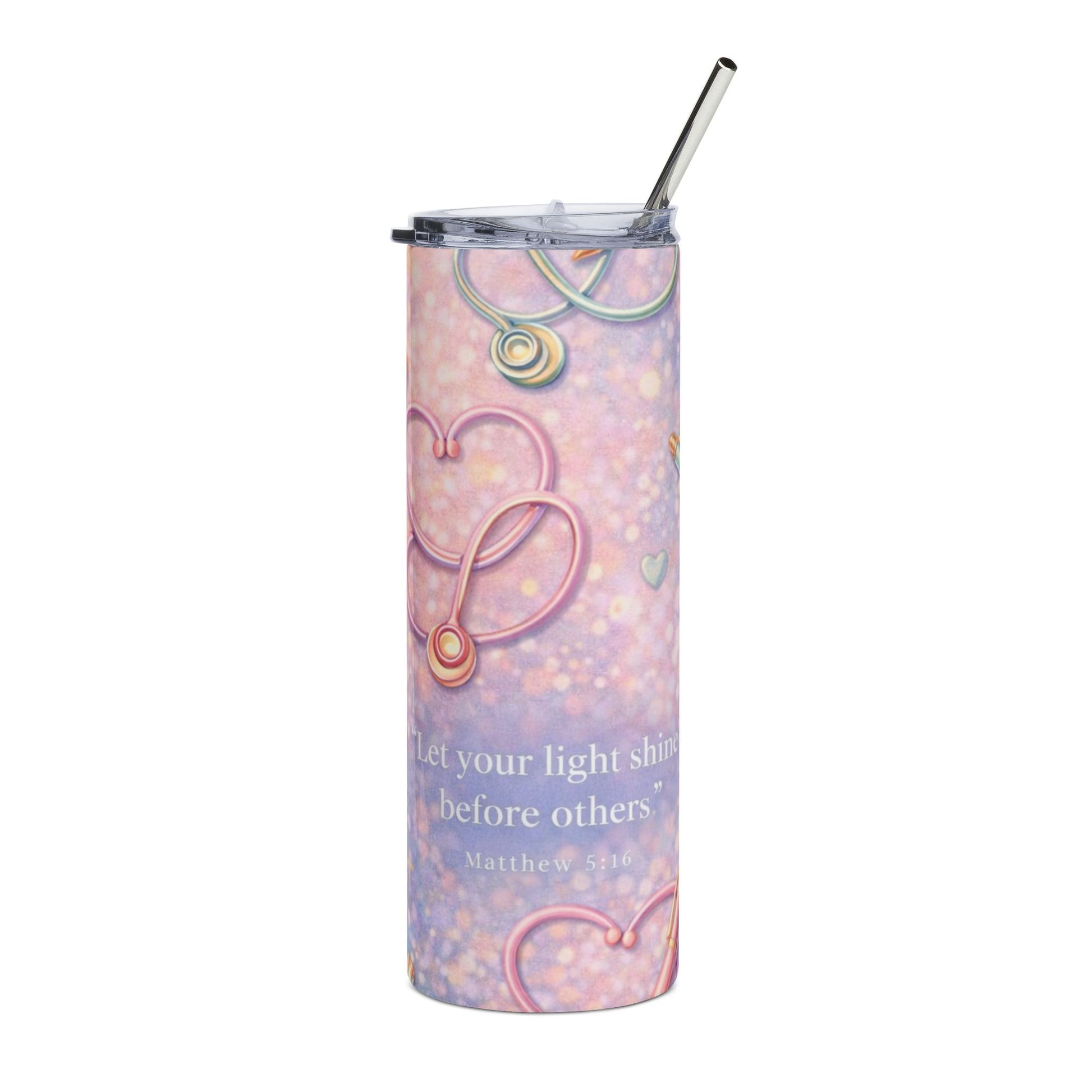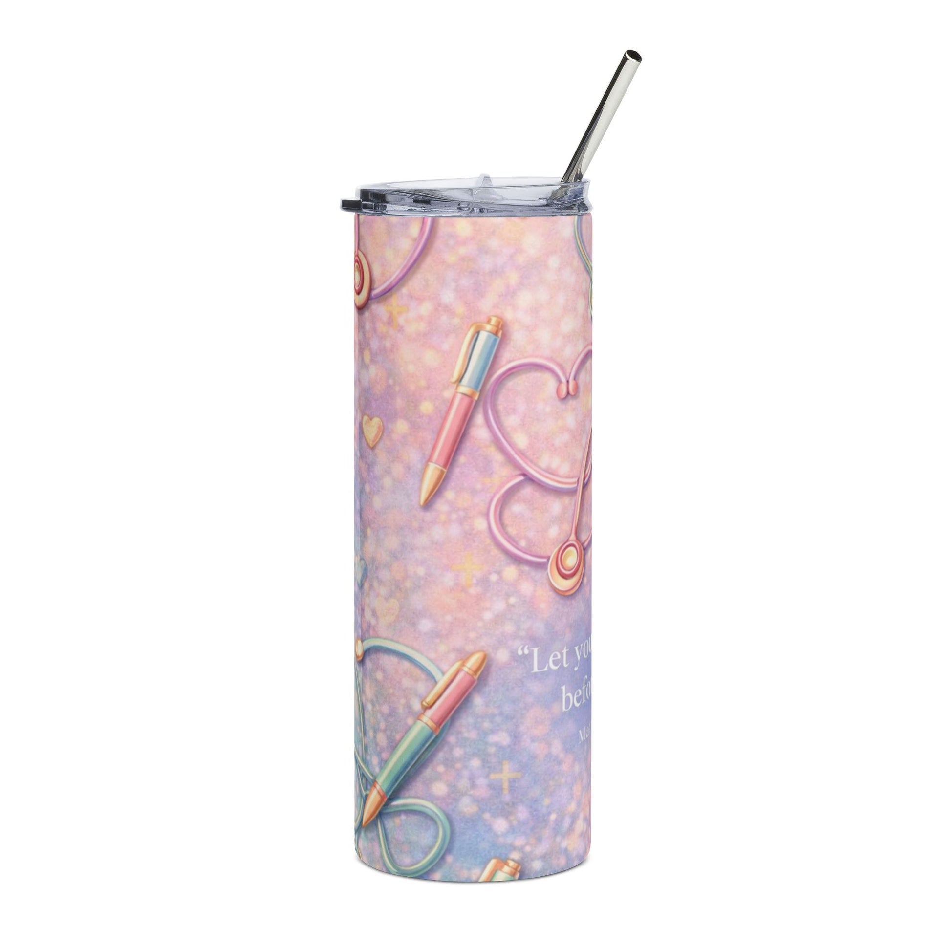 Stay refreshed and spiritually filled with this Faith & Nursing tumbler. Designed for long shifts and busy days, it keeps your drinks just right while reminding you that God is your strength through it all.
