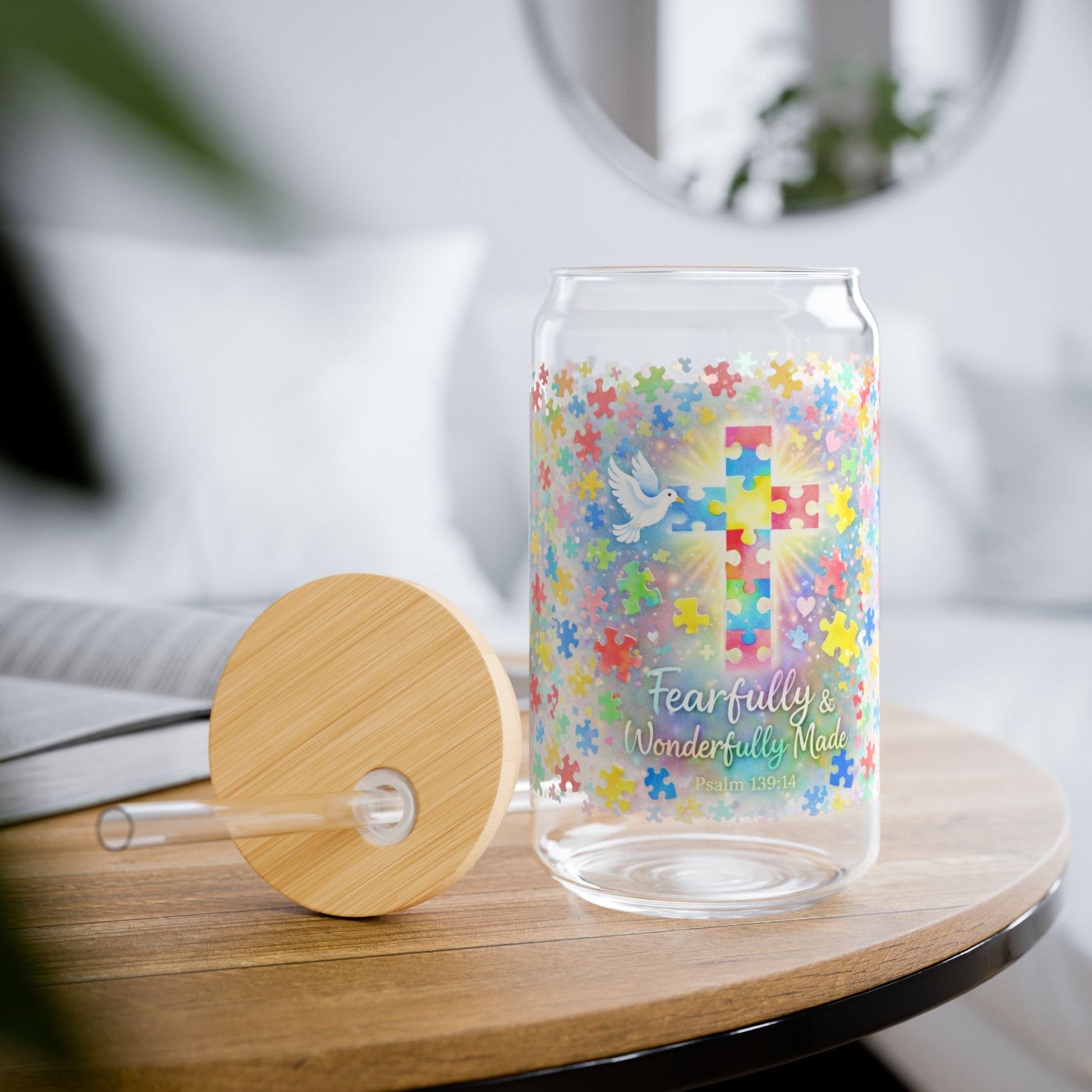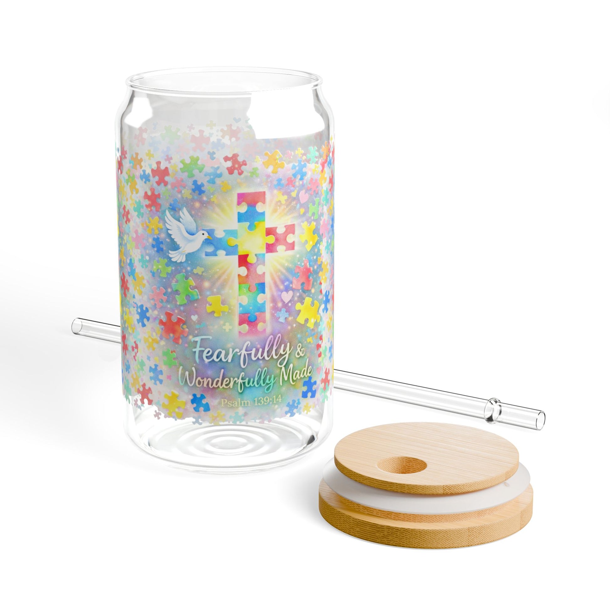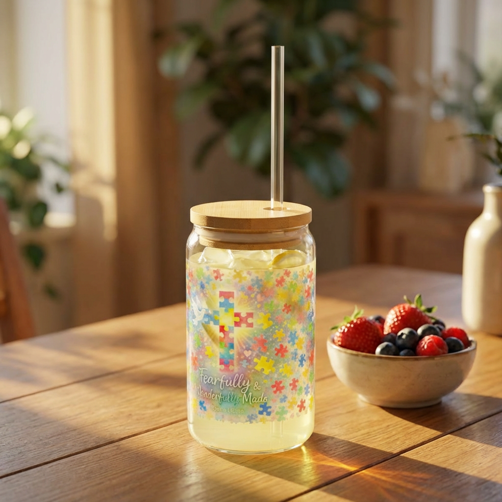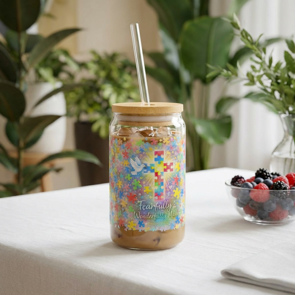 Carry a daily reminder of God’s perfect design with the Fearfully & Wonderfully Made Autism Faith Cross Glass inspired by Psalm 139:14.