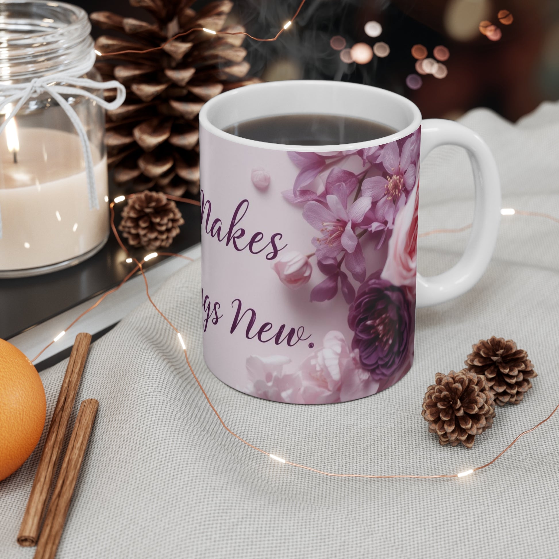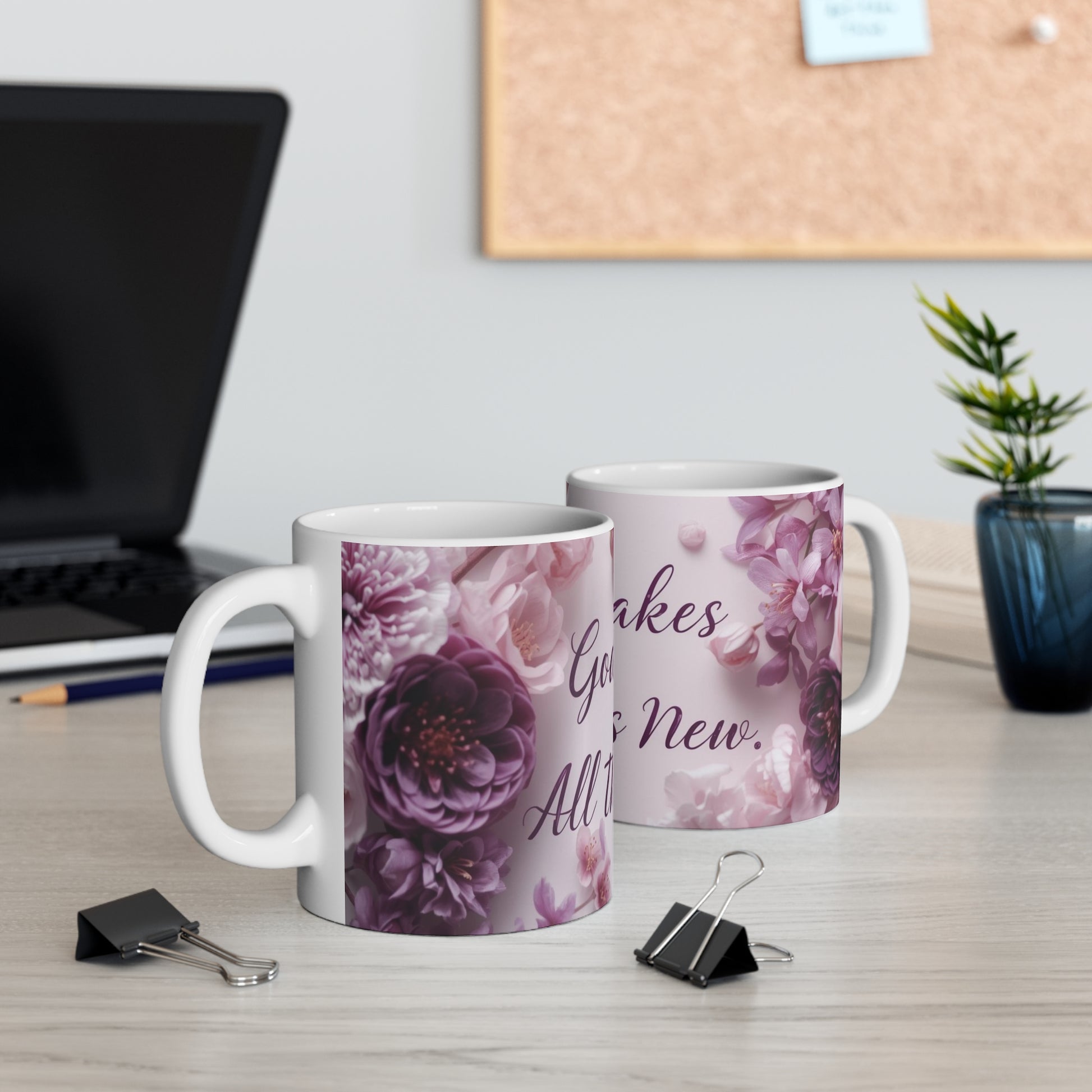 Start your day with a reminder of God’s promise of renewal. The “God Makes All Things New” Mug is inspired by the powerful message found in Book of Isaiah 43:19, reminding us that every new day brings fresh grace and new beginnings. Perfect for your morning coffee, tea, or quiet devotional time, this mug serves as a daily encouragement that no matter the season of life, God is always at work creating something beautiful and new.