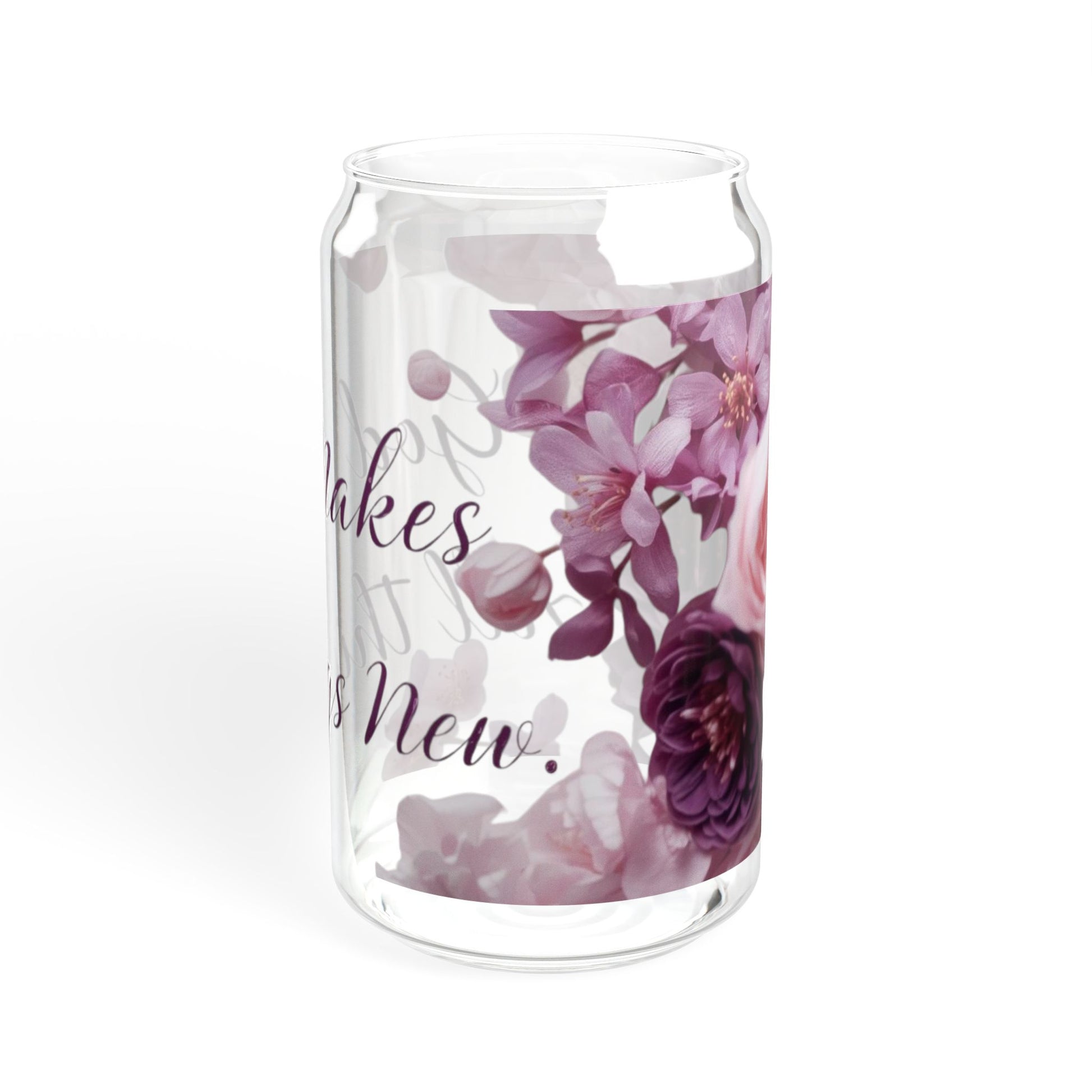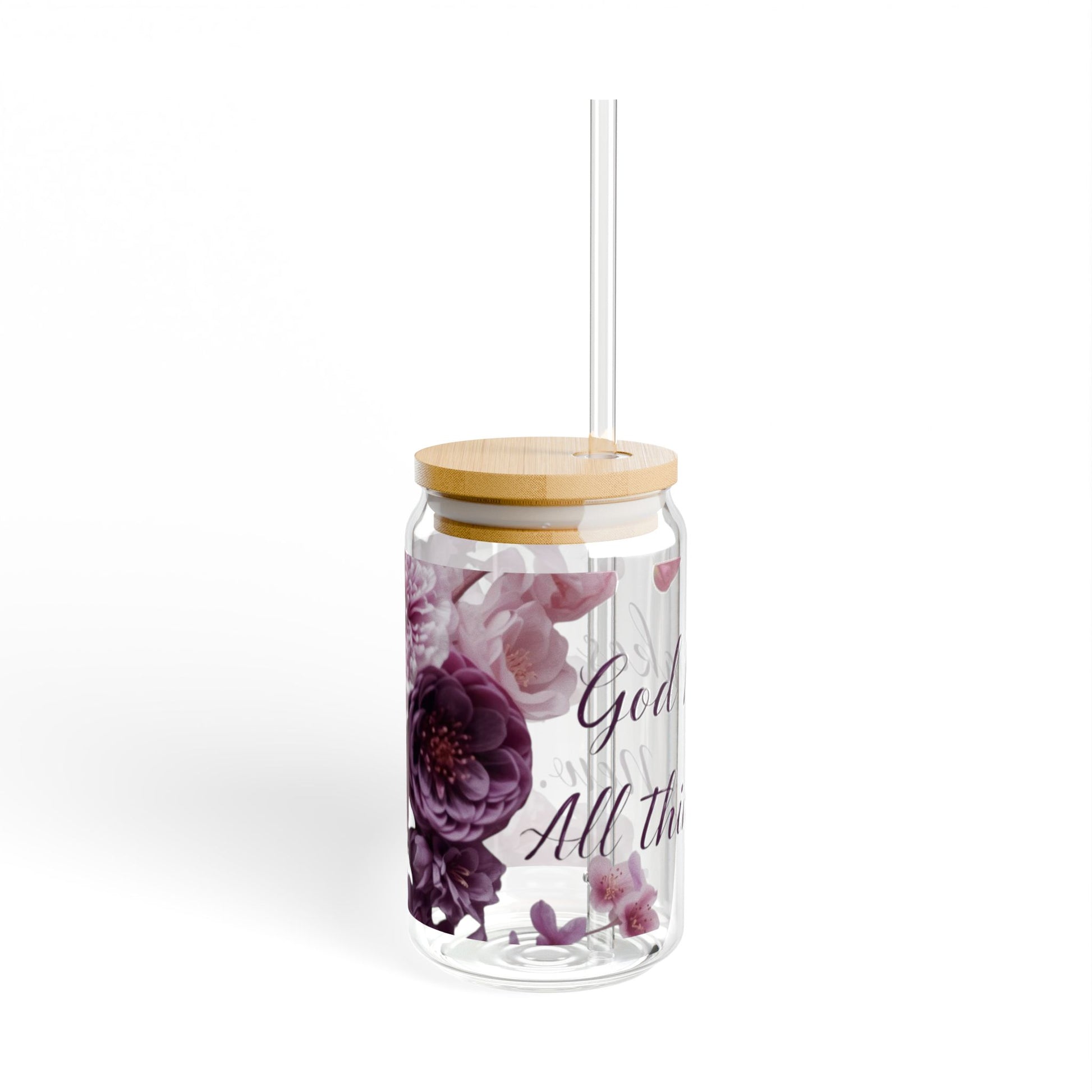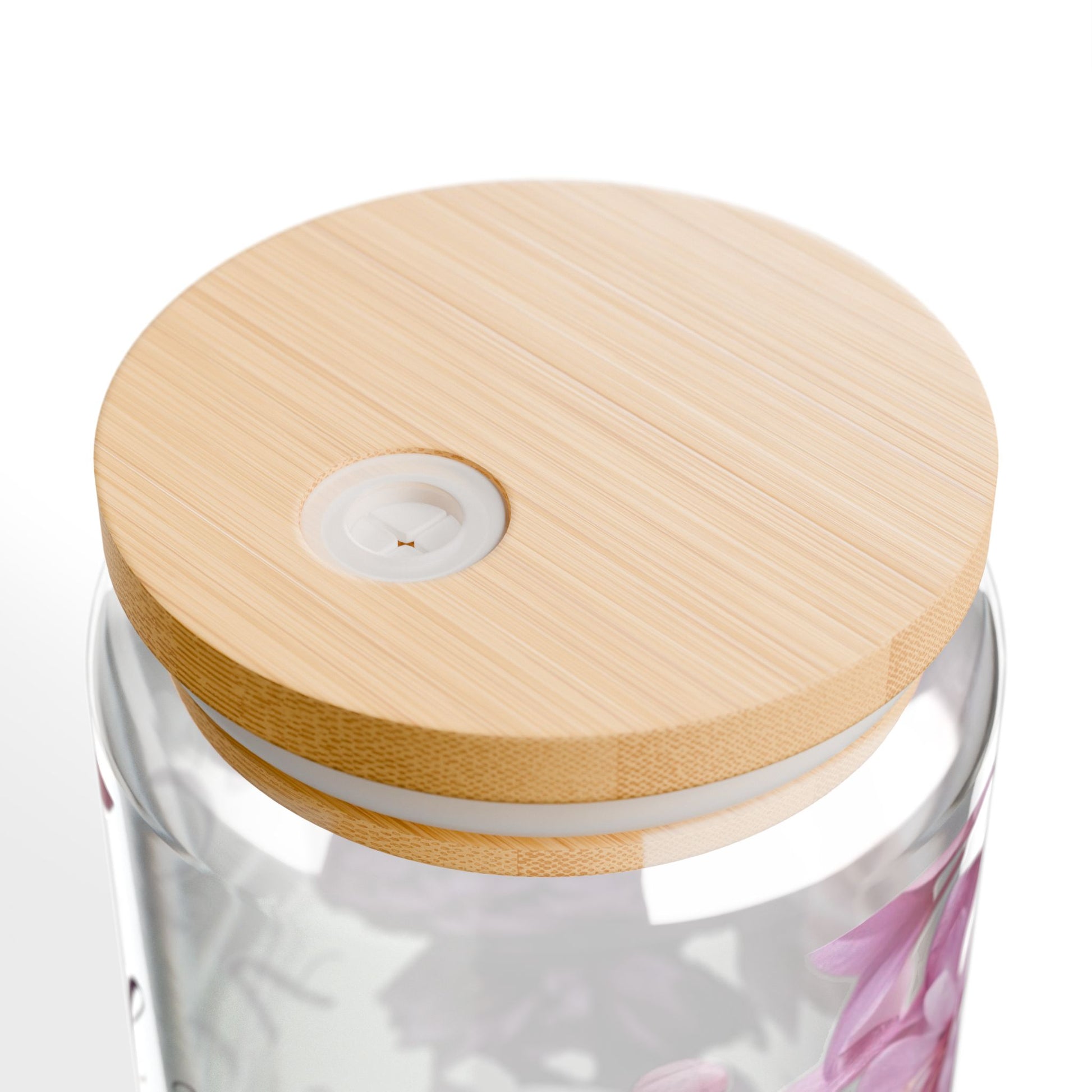 This 16oz sipper glass brings quiet, floral charm to everyday drinks. Clear tempered glass shows off delicate mauve and plum blooms that curl around soft script, while the bamboo push lid and clear Tritan straw keep sipping simple and spill-resistant. It sits comfortably in hand and looks at home on a sunlit windowsill, a cluttered desk, or beside a cozy reading chair. Choose the lid-and-straw option when you want a more finished, portable cup; skip them when you prefer an open glass for kitchen use. Hand wash only to keep the colors crisp and the bamboo lid looking fresh.