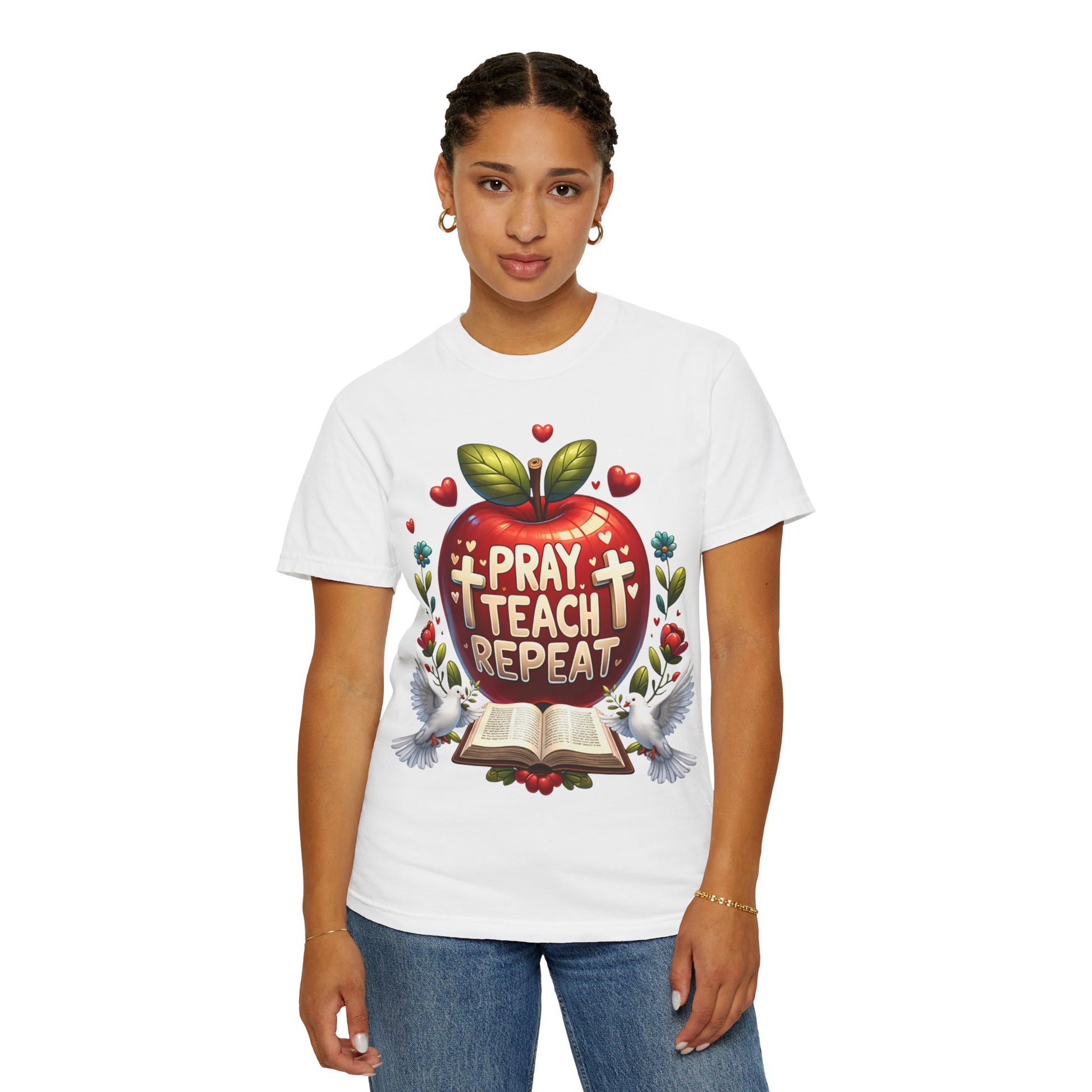 Show your heart for teaching and faith with the Pray. Teach. Repeat. Shirt. This design celebrates the dedication, patience, and love teachers pour into their classrooms every day.