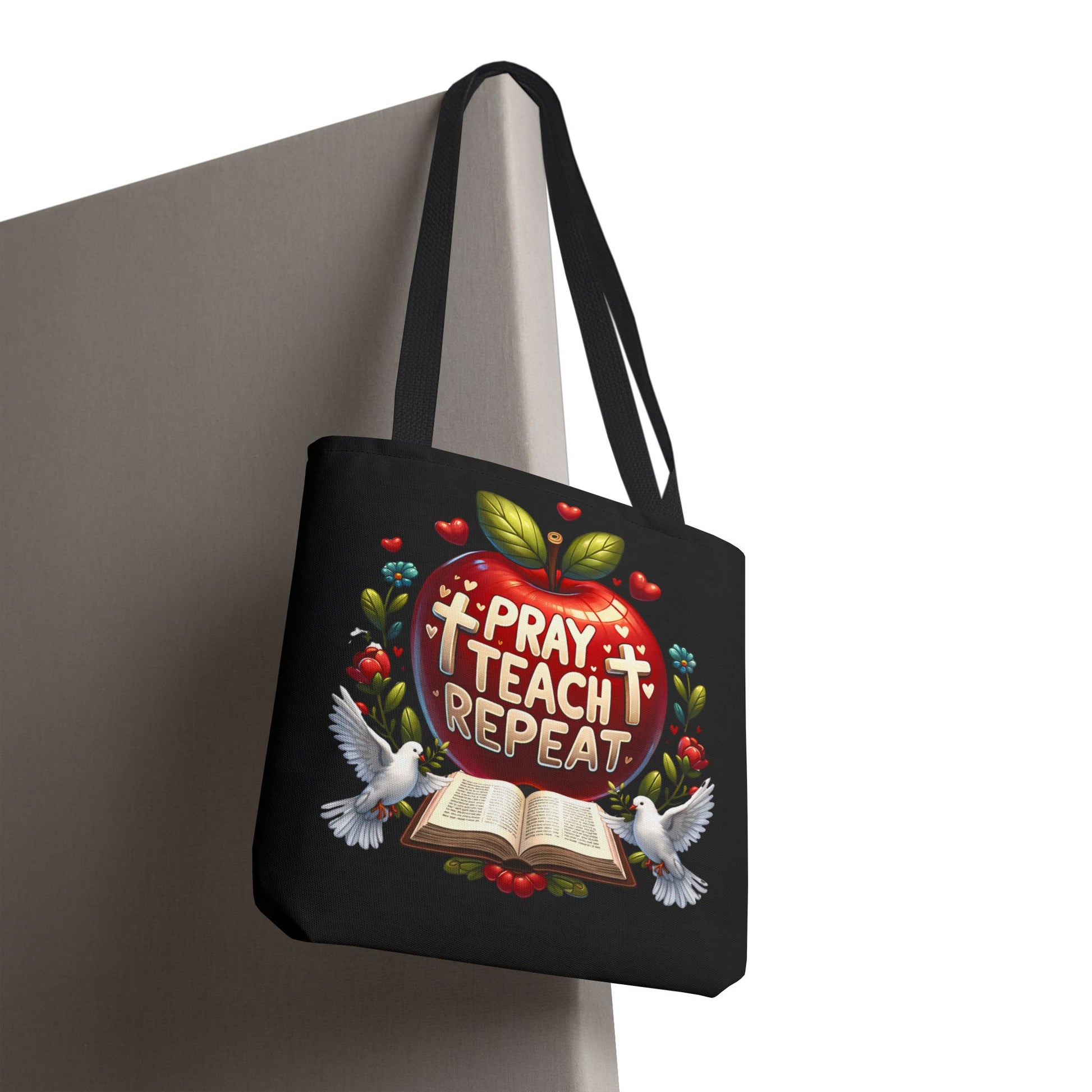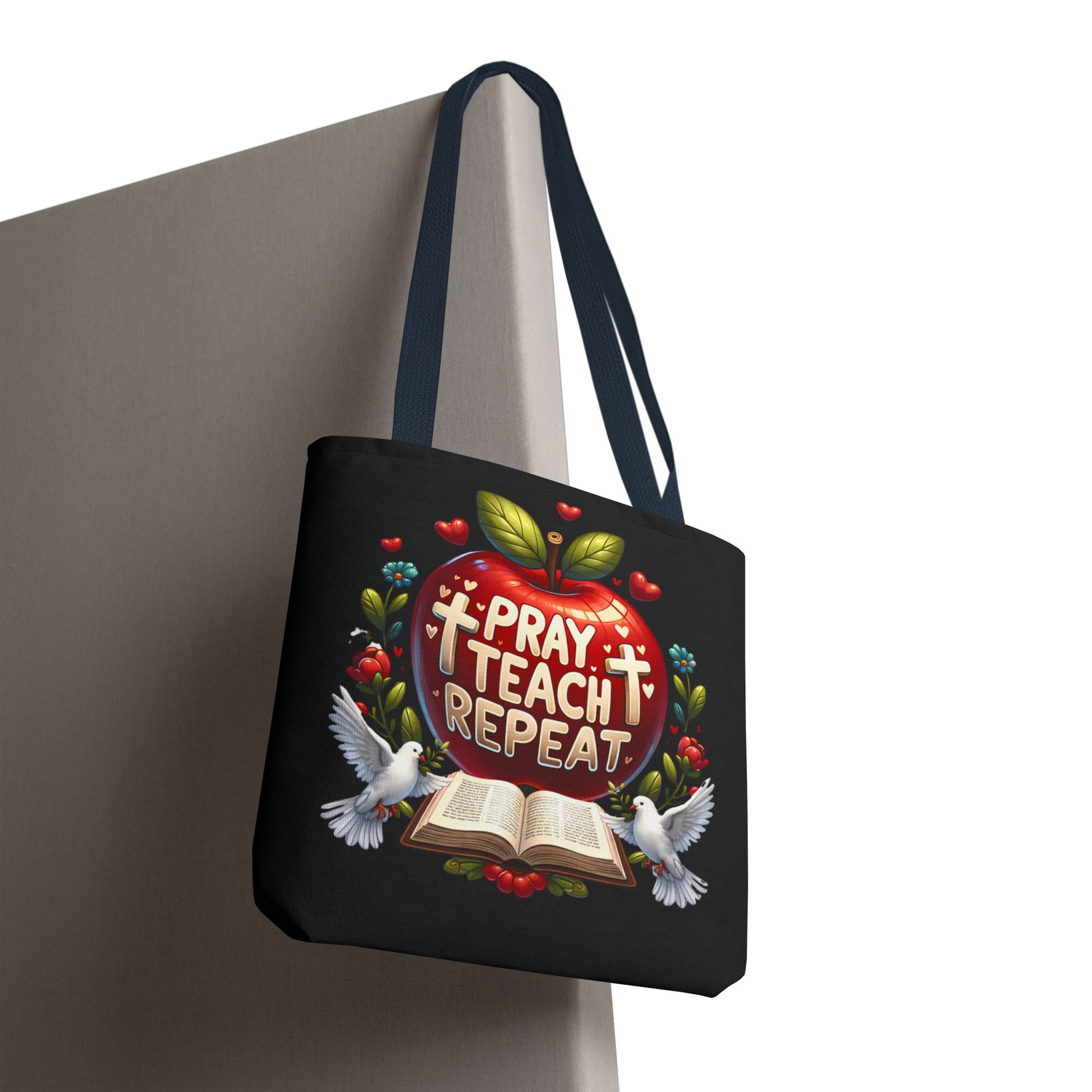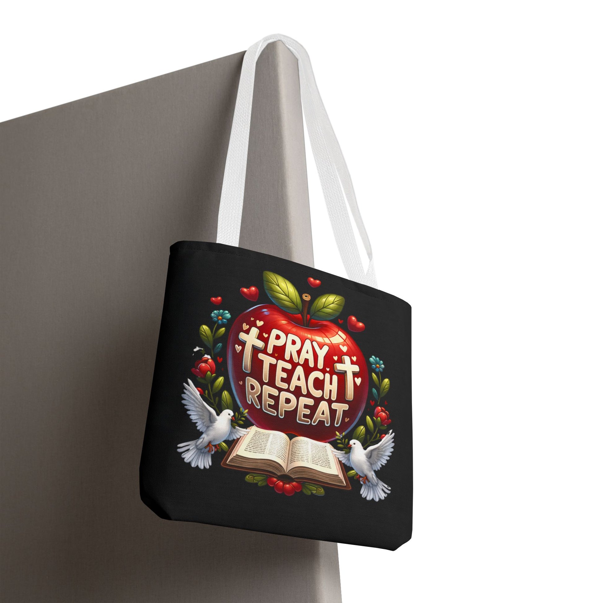 The Pray. Teach. Repeat. Tote Bag is the perfect everyday companion for teachers who carry both supplies and a heart for their students. Spacious and practical, it’s ideal for books, lesson plans, notebooks, and classroom essentials.