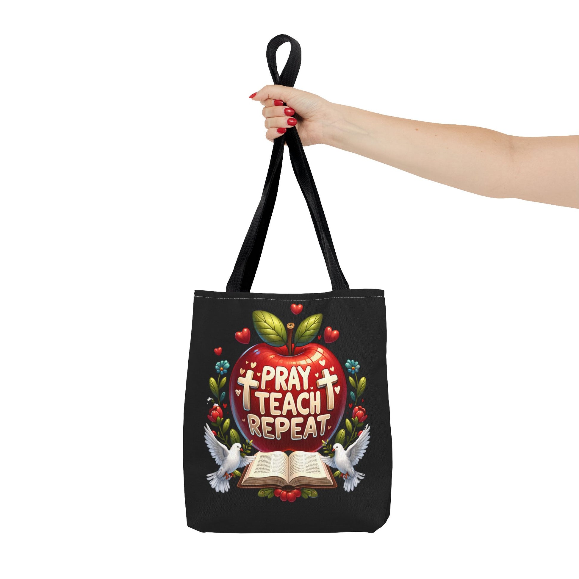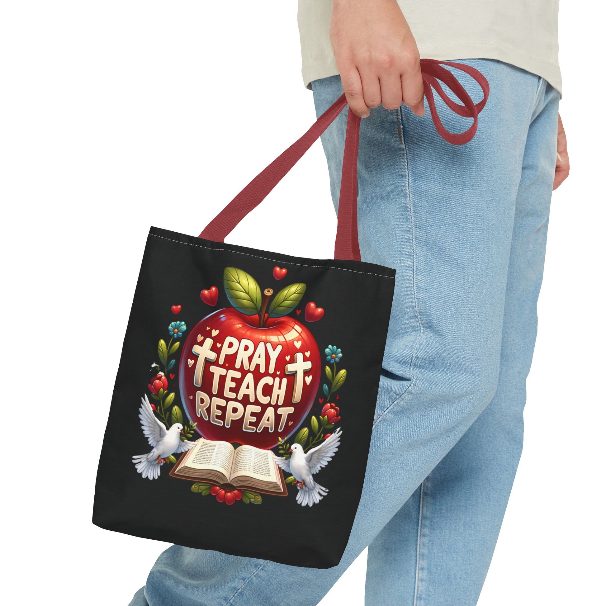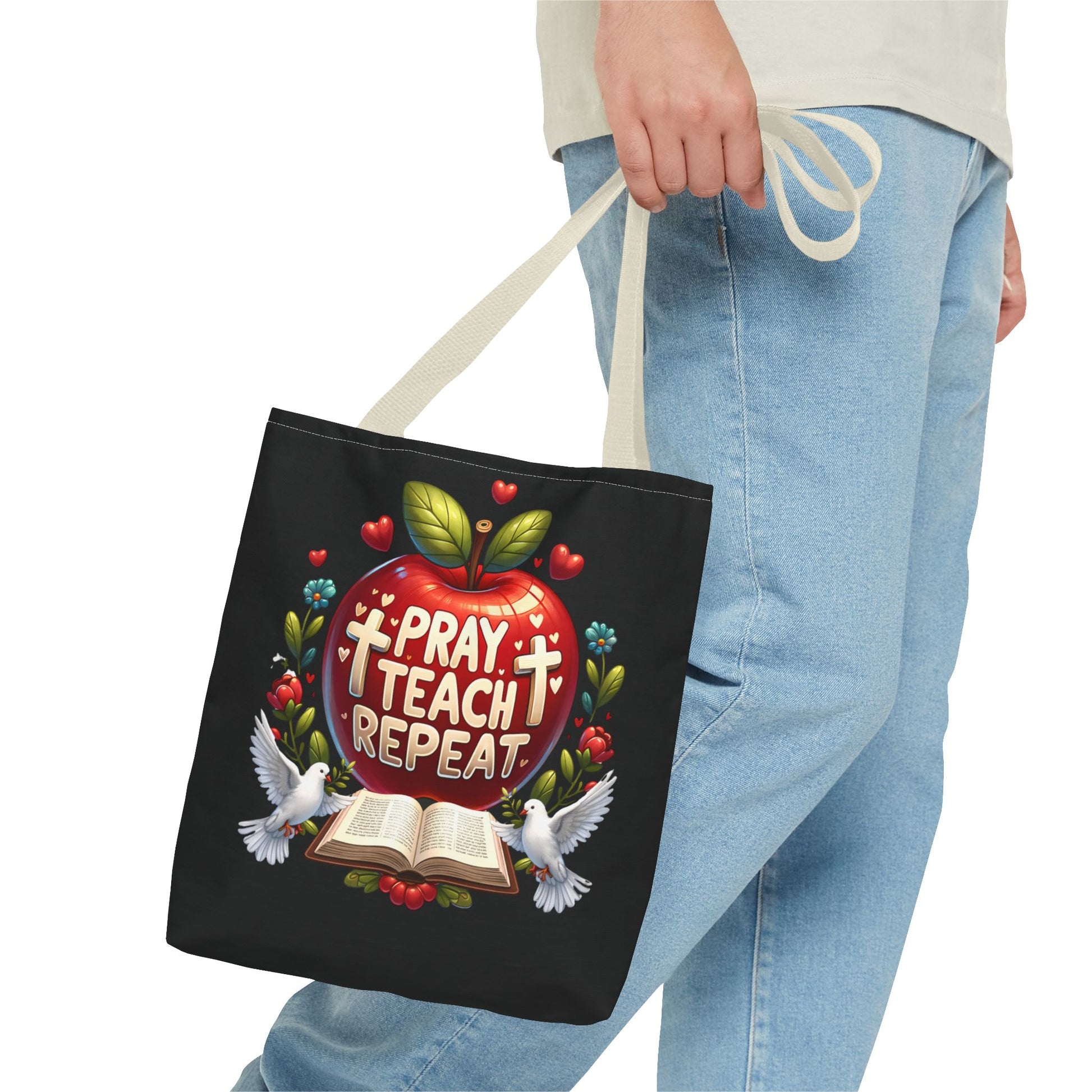 The Pray. Teach. Repeat. Tote Bag is the perfect everyday companion for teachers who carry both supplies and a heart for their students. Spacious and practical, it’s ideal for books, lesson plans, notebooks, and classroom essentials.