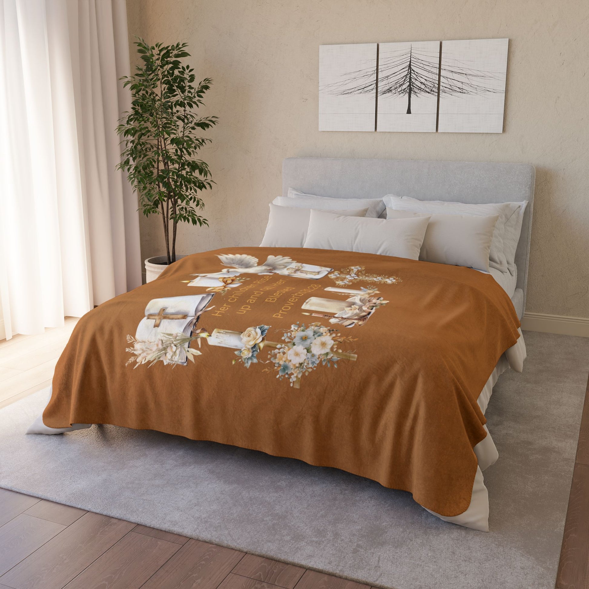 this faith-filled design brings warmth not only to the body but also to the heart. Gentle tones and elegant styling create a peaceful atmosphere perfect for prayer time, quiet reflection, restful evenings, or slow mornings in God’s presence.