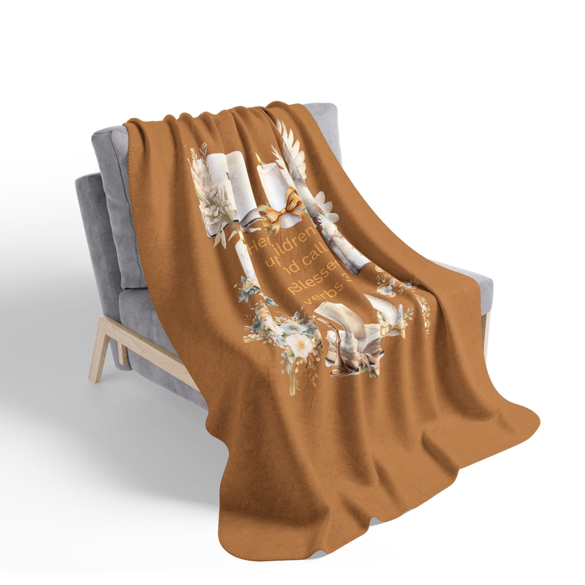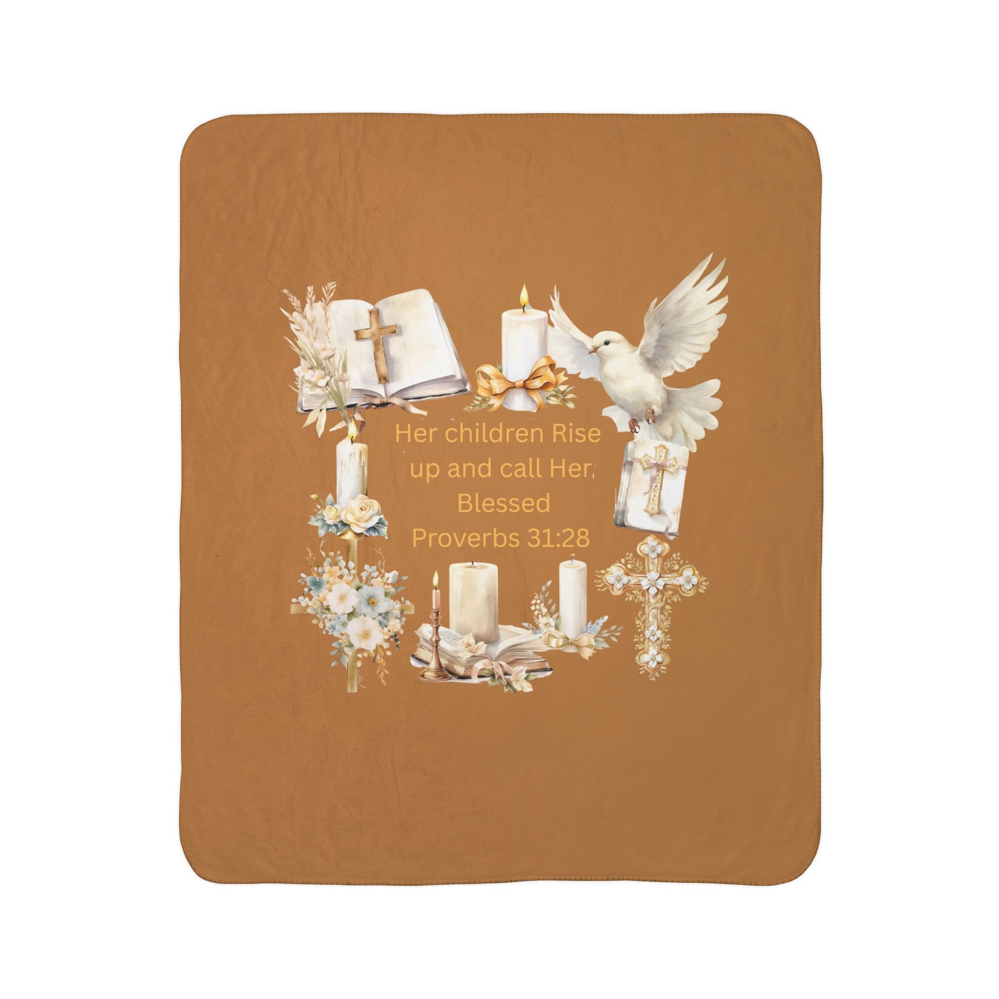 Wrap yourself or someone you love in comfort, peace, and the beautiful promise of God’s Word with the She Is Blessed Proverbs 31:28 Cozy Faith Blanket.