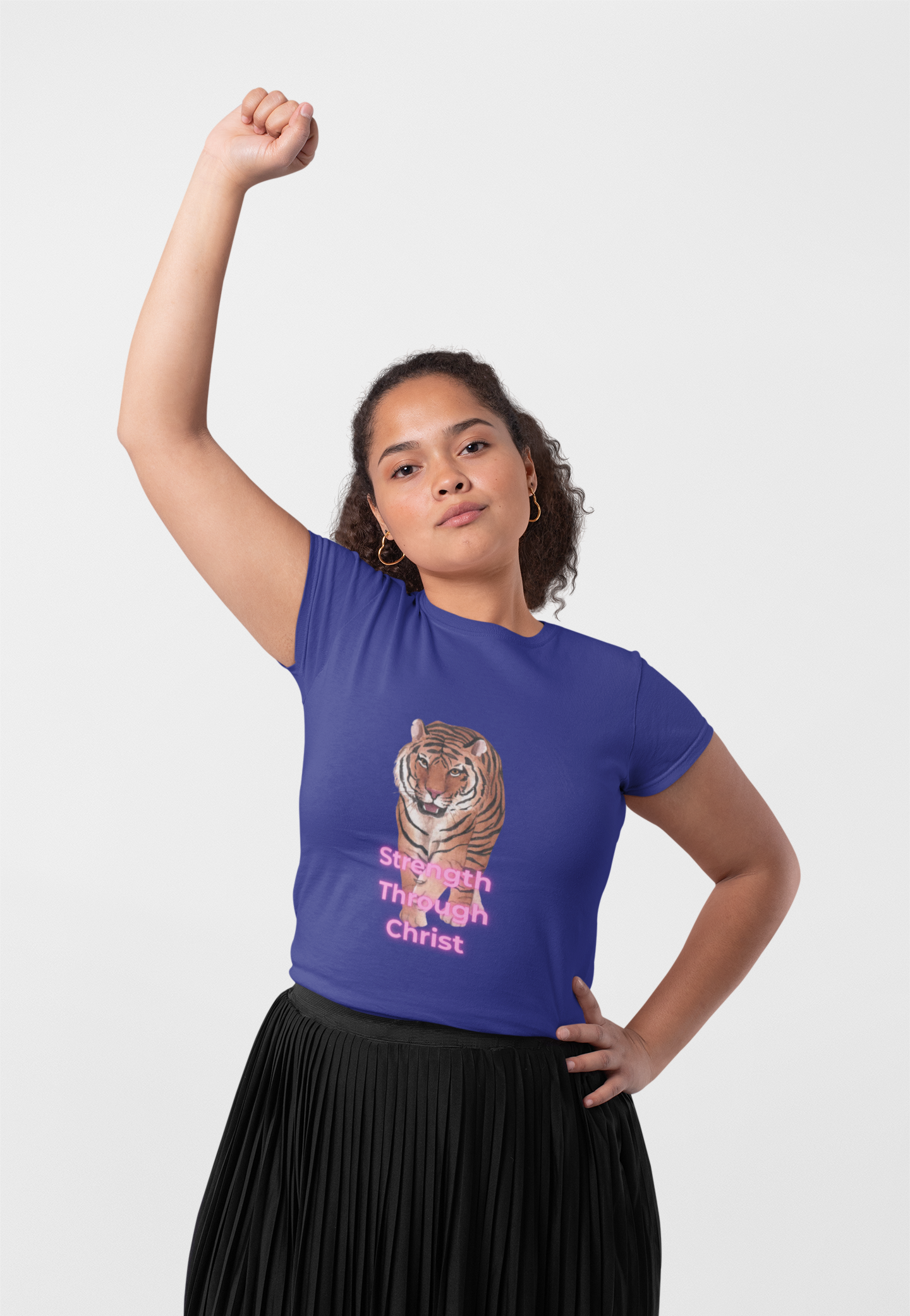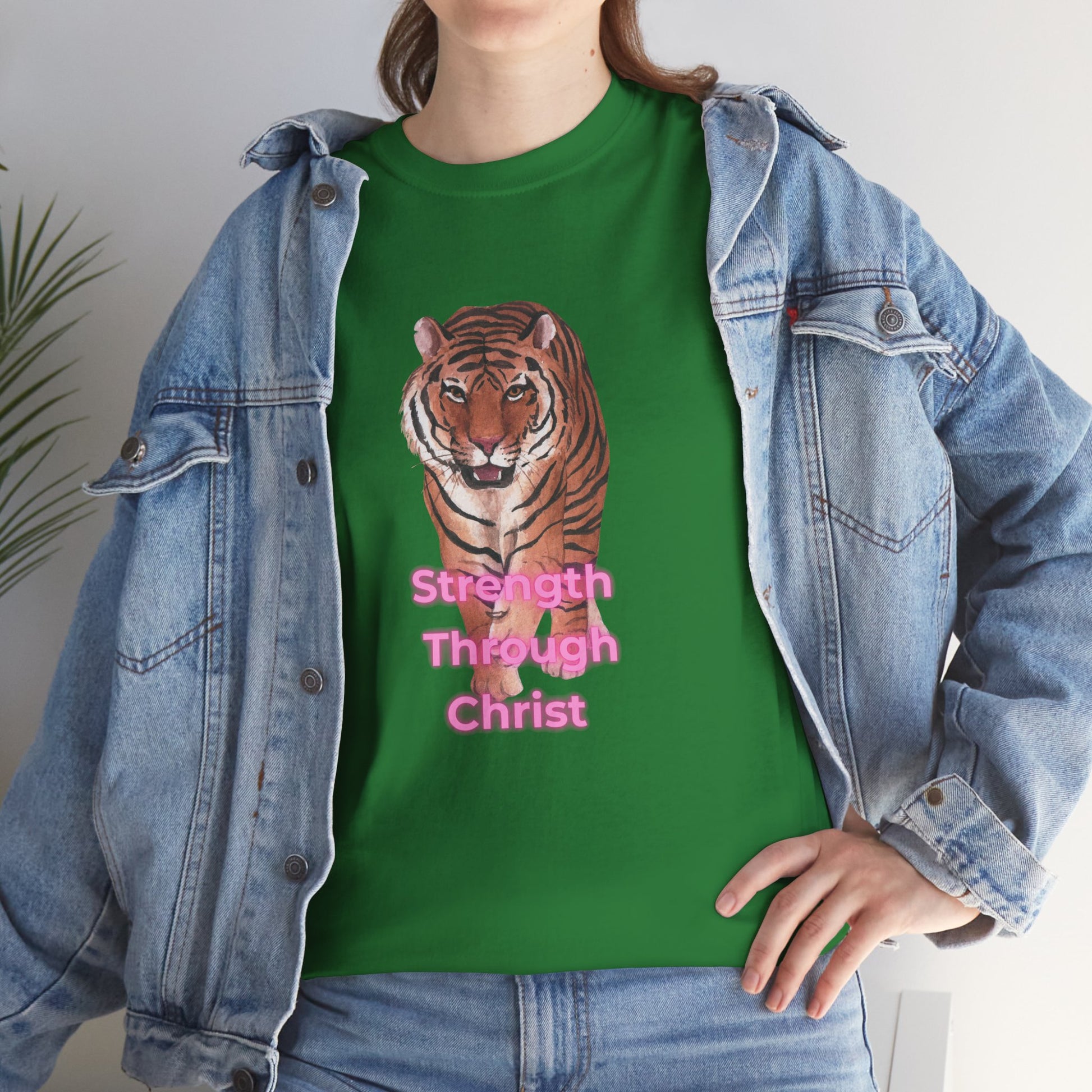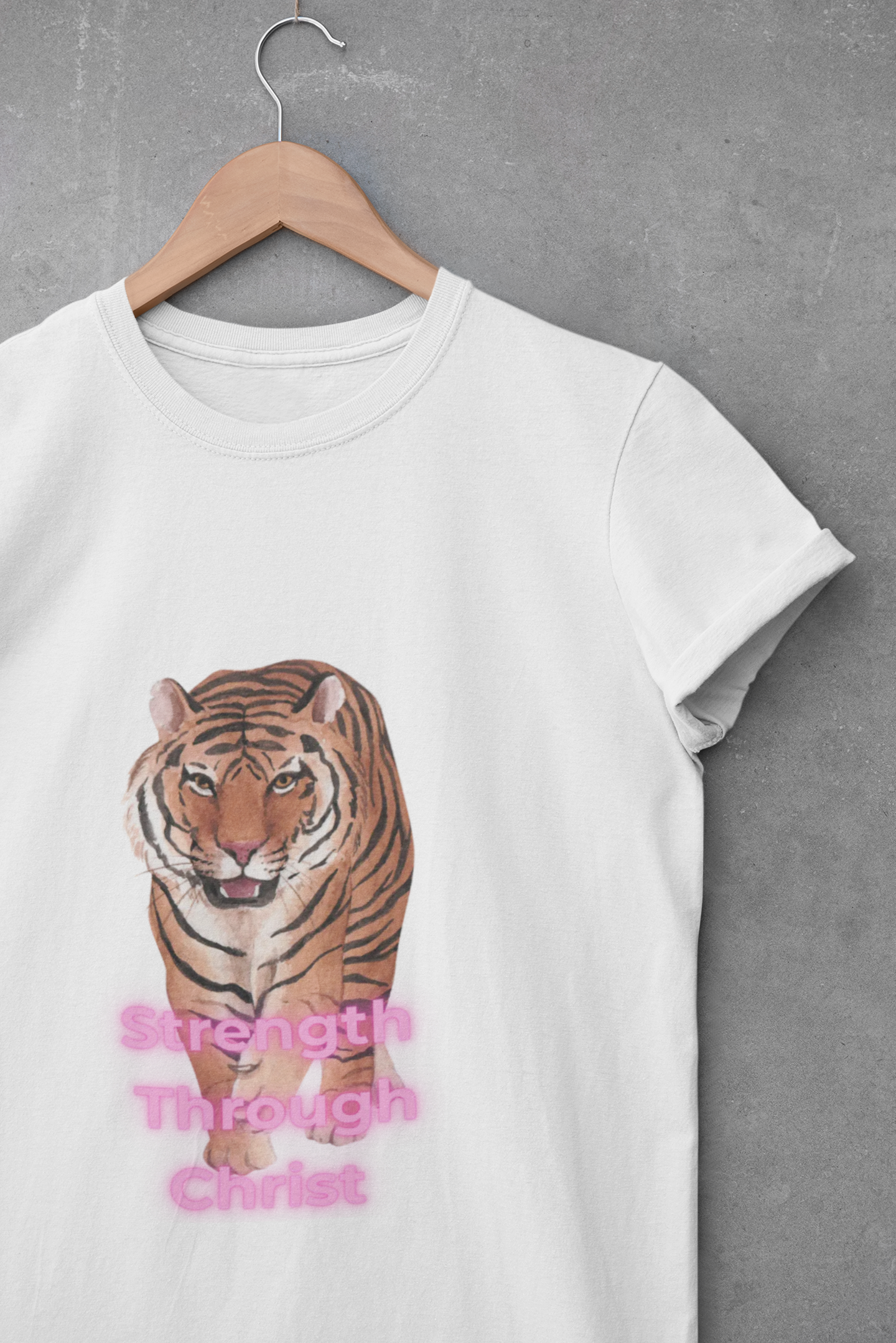 Inspirational "Strength Through Christ" design on front