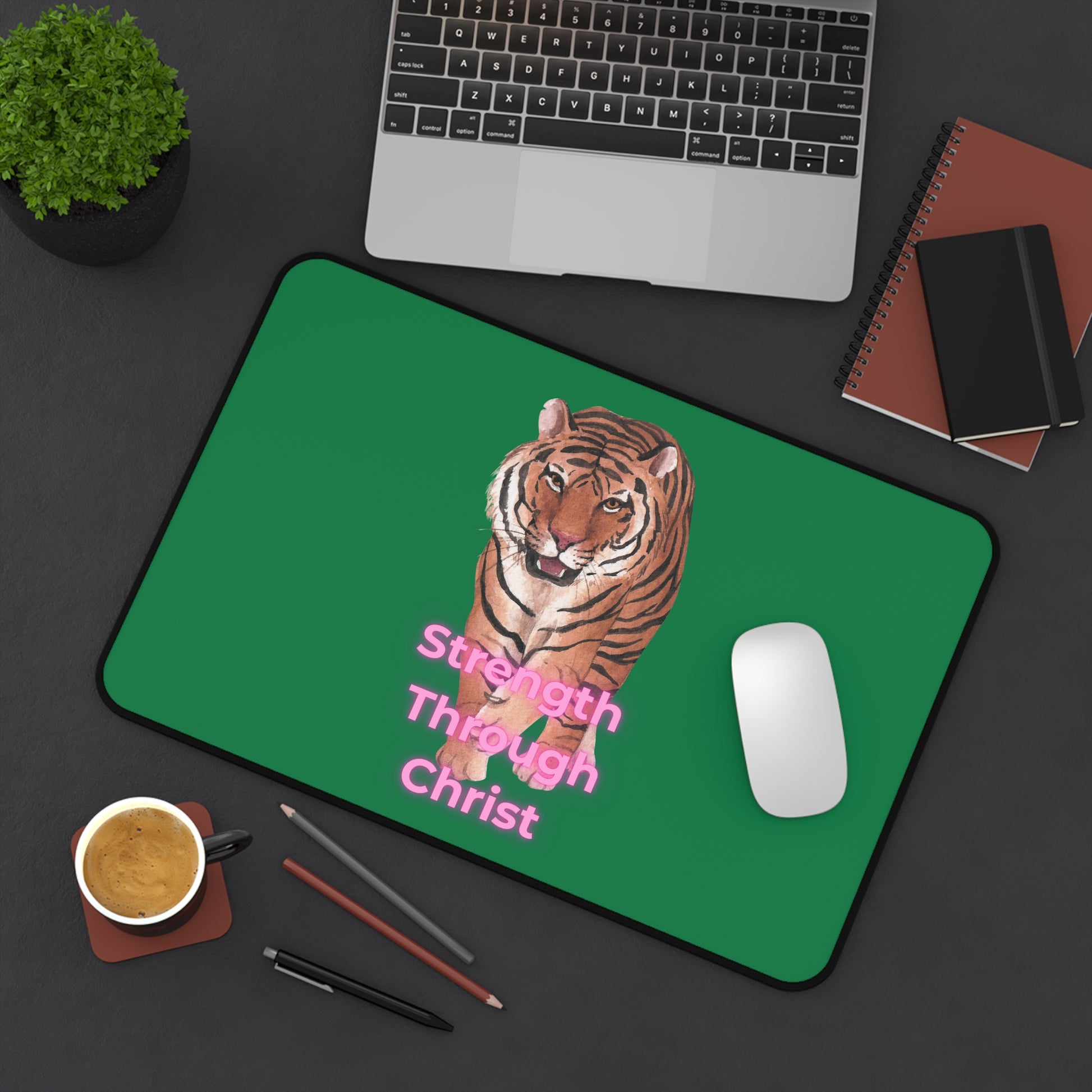 This Desk Mat featuring the design 'Strength Through Christ' is perfect for anyone looking for a durable and vibrant surface for writing, typing, or crafting. The non-slip bottom and anti-slip backing ensure it stays in place while providing support. Ideal for Christians celebrating the strength they find in Christ.